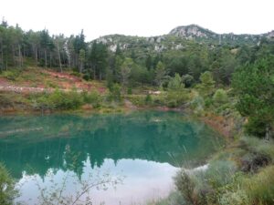 Desde el mirador, un camino descendente nos conducirá a la balsa del río Esperamalo. Aquí se vuelven a separar los itinerarios.